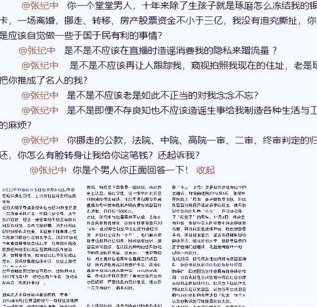 婚姻上的烂账 你说直播这事还没解决完呢,微博那边张纪中的前妻又甩出一堆证据来说杜星霖是“插足者”,还要公开收集当年的证据,不过这件事看样子对着对夫妻来讲不算什么大事,两人连回应都没打算回应。 张纪中前妻夫妻还说张纪中在离婚前就把北京的一套价值1.2亿的别墅给了杜星霖。 虽然张导这边一直都说这是前妻对他的骚扰,也一直否认这件事的真实性,但杜星霖当年突然和他走到了一起,从时间线上就有着不少让人感到疑惑的地方。