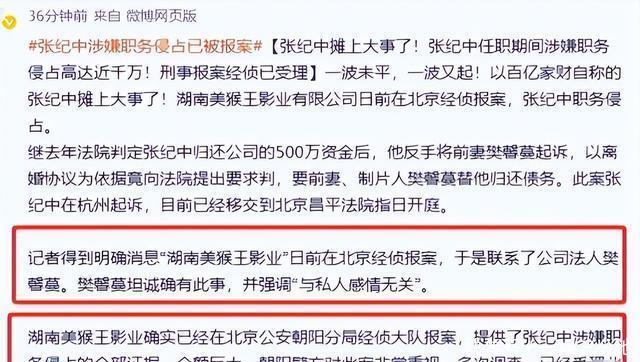 前有狼后有虎 张导现在的生活,怎么想都很累吧,前有妻子的“嫌弃”,后有前妻的“报复”,左有早上要亲自带孩子上学,今年上半年还因为送孩子上学除了车祸,右还有个一岁的女儿等着换尿布。 70多岁的人了,连消停都消停不了。 前两天,她前妻又扔出一枚“重磅炸弹”,她作为湖南美猴王影业的董事长,直接一纸诉状,告上了北京经侦,说张导涉嫌职务侵占。